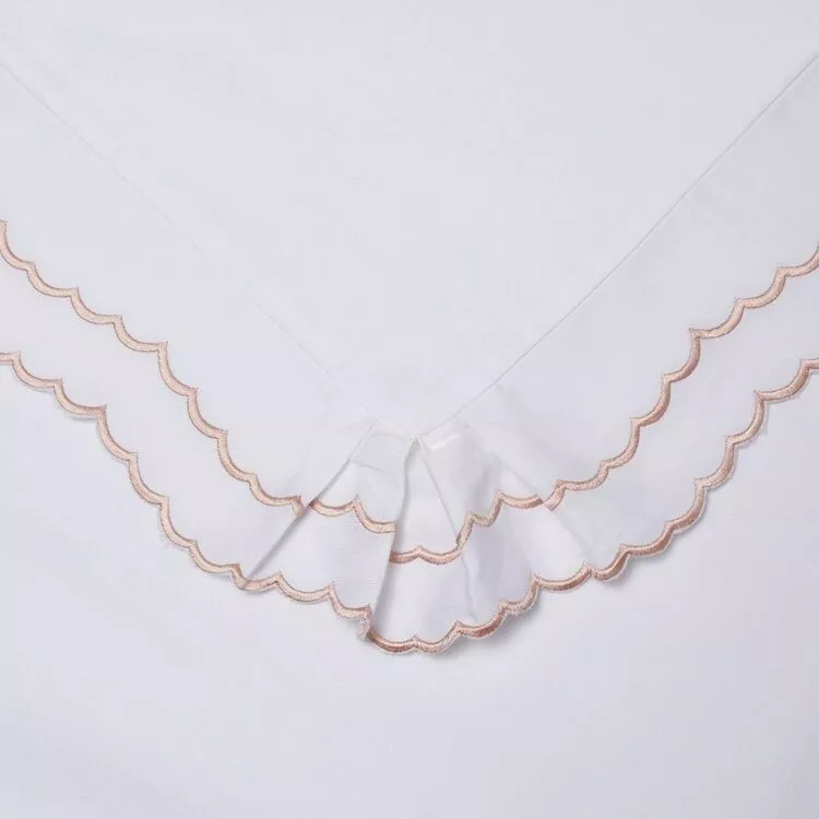 Fall into a silk-soft bliss with this delicately designed Chyka Sweetheart Sateen Sheet Set from the Chyka Home collection. This cotton sateen sheet set is touched off with elegant baby pink stitching and frilled edges that are feathery to the touch, featuring a 300 thread count cotton sateen that will make you feel as though you are drifting off to sleep amongst the clouds. Pair this gorgeous design with our Sweetheart Cotton Sateen Euro Pillowcase Pair to allow your bedroom to transform into a gentle oasis.