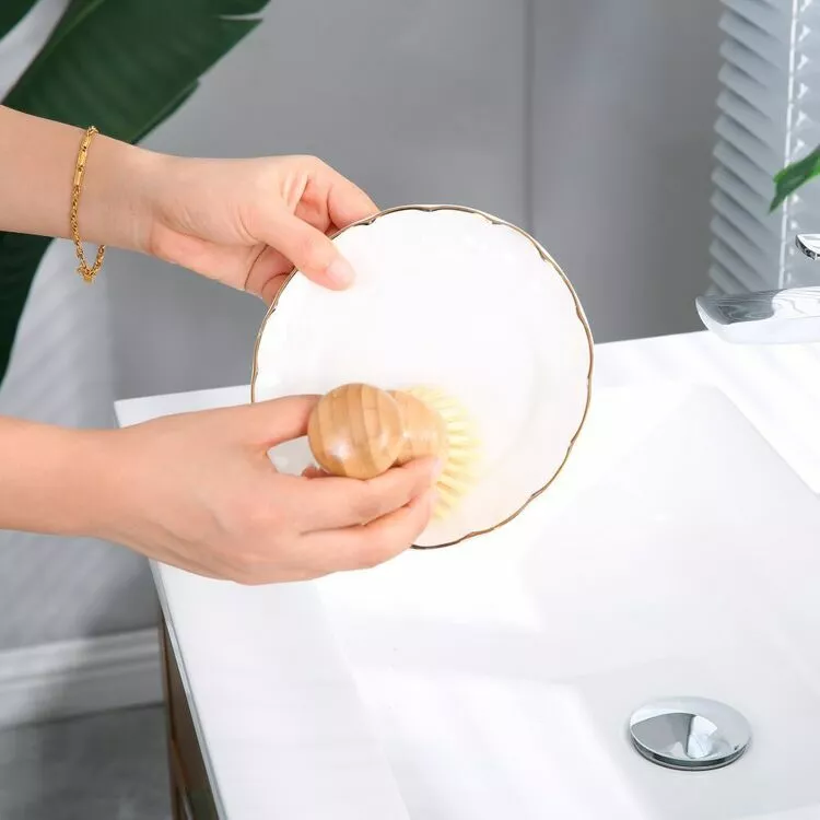 The Clevinger Bamboo Pot Brush is a sustainably designed brush made from bamboo, firm recycled nylon bristles and a hemp loop. The doorknob design handle makes gripping and scrubbing easy. The bristles are strong enough to scrub but it also has the added benefit of not scratching non-stick pot surface.
