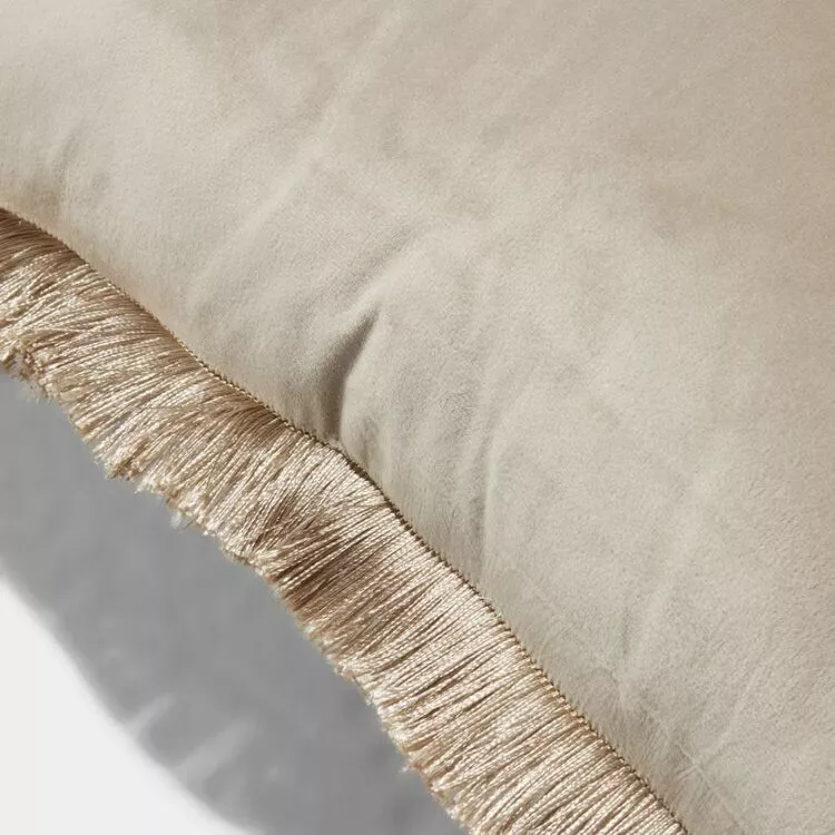 Elysian Velvet Fringe Cushion Linen 50 X 50 Cm