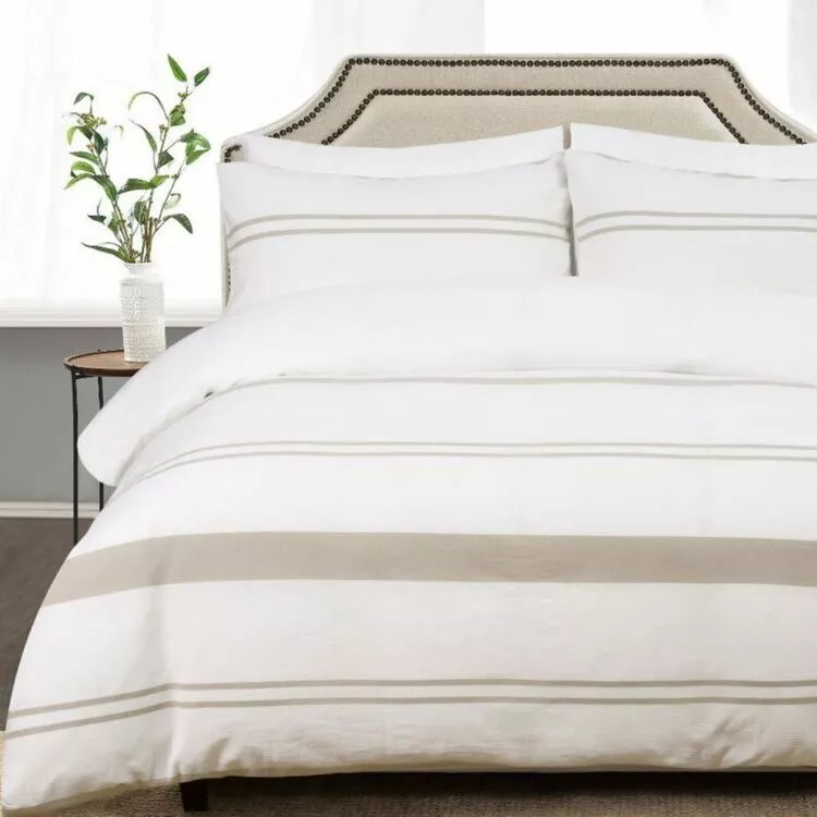 Jane Lamerton Sydney Jacquard Quilt Cover Set will give your bedroom the perfect minimalist update this season. Featuring a light beige horizontal striping pattern over a white base, this quilt cover set is a simple and versatile design will suit any style of bedroom décor. Made out of comfortable and soft cotton, it is breathable and useable all year round. Elevate your home with the Jane Lamerton bedding range at Harris Scarfe today.