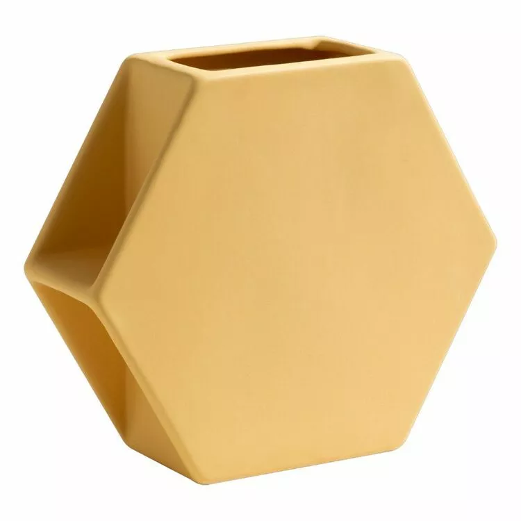 Create a gorgeous focal point in your home by placing floral arrangements in this stunning butter coloured Kas Hex Medium Vase, designed by Ben David. This piece is fully ceramic and measures 22.7 x 7.7 x 19.8 cm. Find everything you need to personalise your home, in-store and online at Harris Scarfe.