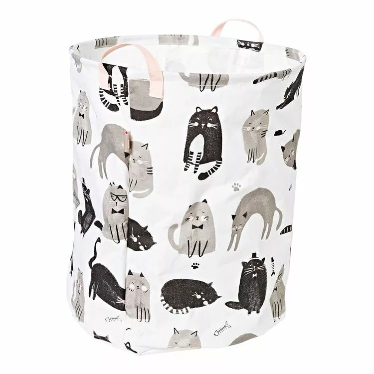 Keep all your dirty laundry under the watchful eye of Moggs the cat. All Moggs asks in return is a good place to nap, snacks and the occasional back rub and mouse toy.