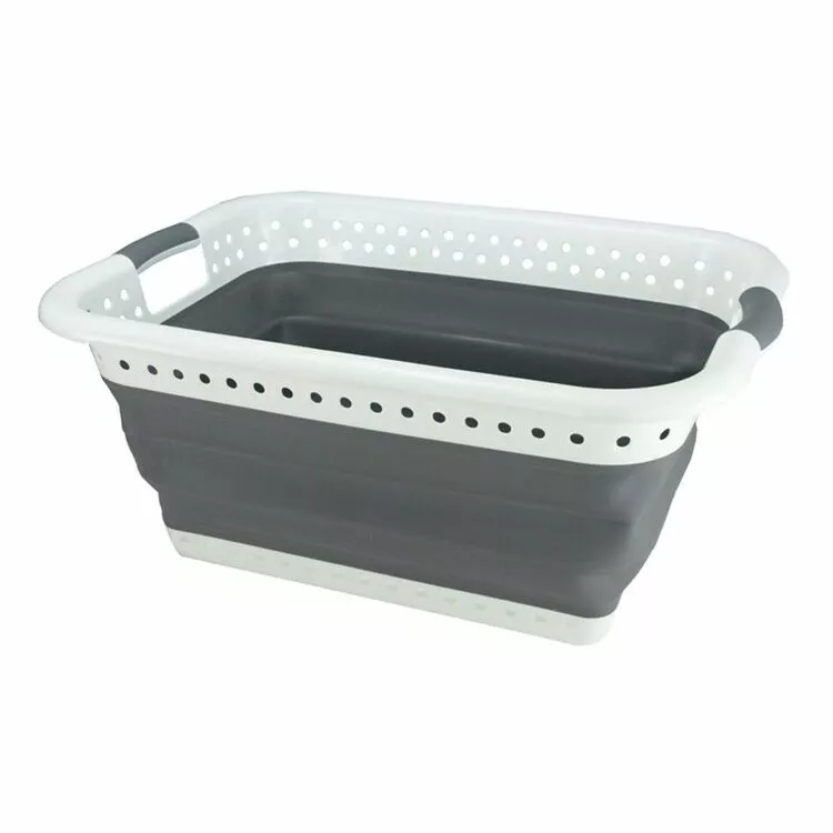 This laundry basket can be folded flat when not in use! Just the thing for a small laundry, or for use when camping or travelling.