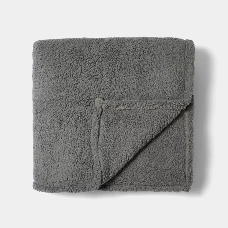 Soren Teddy Fleece Extra Large Throw Charcoal 160 X 210 Cm