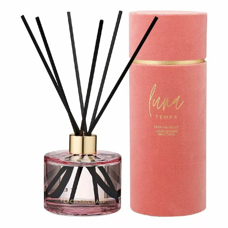 Invigorate your bedroom, living space or bathroom with the Tempa Luna Peach Orchard Diffuser’s fruity fragrance notes. This fragrance is diffused through a bundle of dainty reeds and presented in a stylish glass bottle. Packaged in a luxe velvet gift box, it is a wonderful option for gifting. This 200mL bottle will last approximately 4 months. Tempa’s fragrances are delicate and timeless, making them a gorgeous addition to any space. Harris Scarfe has a stunning selection of home fragrances to meet a wide range of scent preferences. Find the perfect scent pairing in-store or online today.