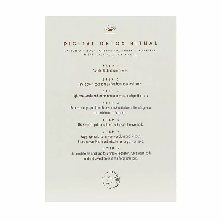 | Contents | 1 x 200 g Lavender & Bergamot Scented Bath Soak1 x 80g Lavender & Bergamot Soybean Wax Candle1 x Bamboo Silk Cooling Eye Mask with Gel Pad Insert1 x Ear Plug Set1 x Step-by-Step Guide to the Perfect Digital Detox Ritual |