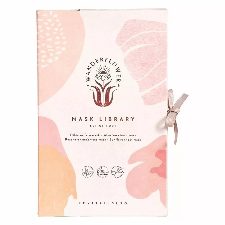 Treat yourself to the most natural of relaxation sessions with this Sheet Mask Set from Wanderflower. This curated a collection of gentle masks for the eyes, face, hands and feet that are suitable for all skin types. Inspired by the natural virtues of roses, aloe vera, sunflowers and hibiscus, the masks contain oils and extracts from real flowers, seeds and leaves. Just lay back, switch off and allow nature to heal you. Set of four Sheet Masks for the face (hibiscus), eyes (rosewater), hands (aloe vera) and feet (sunflower). The carefully considered formulas contains no parabens, and are vegan friendly and cruelty free for your peace of mind.